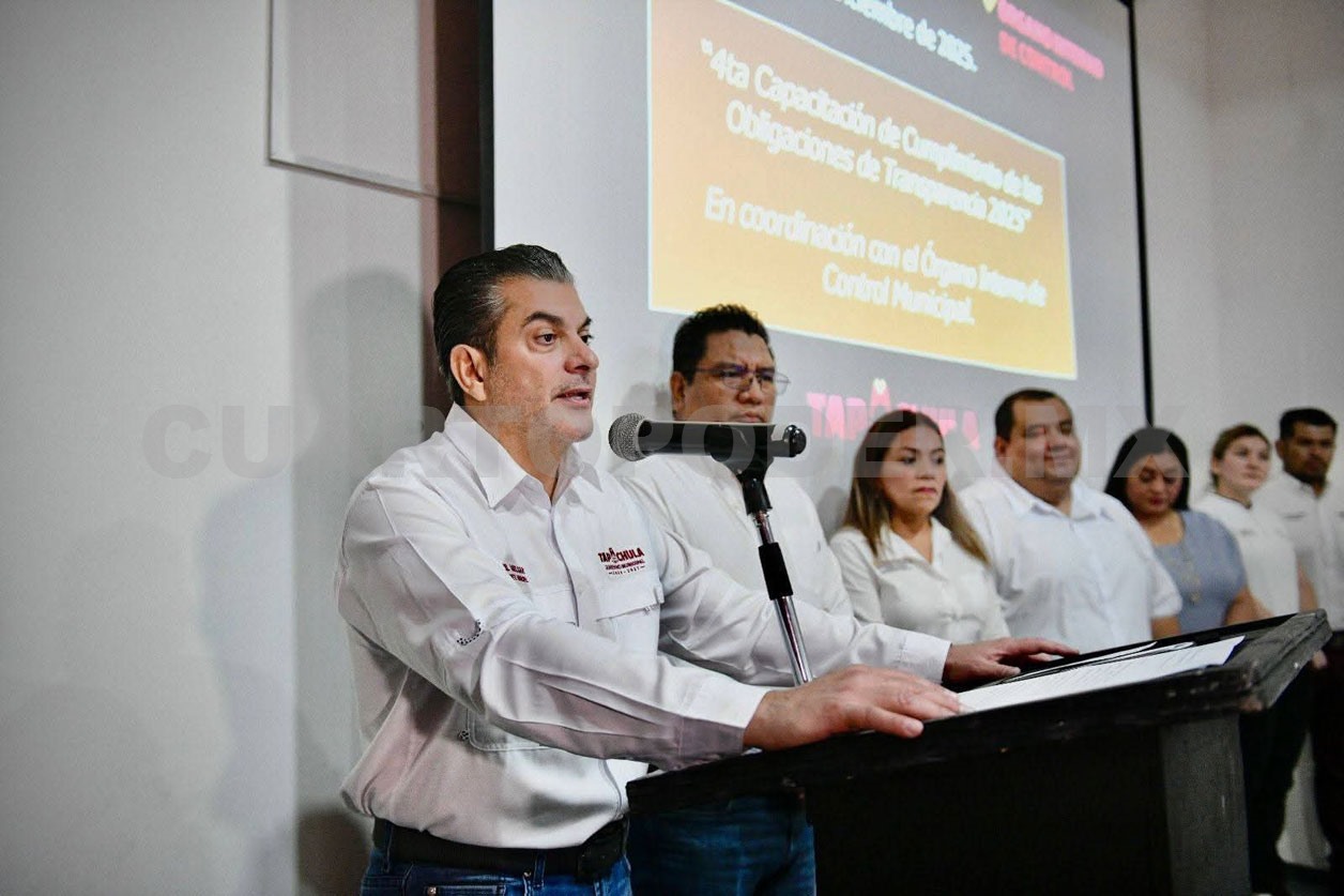 Al poner en marcha la 4ª Jornada de Capacitación de las Obligaciones de Transparencia en coordinación con el Órgano Interno de Control Municipal, el alcalde Yamil Melgar Bravo refrendó el compromiso del Ayuntamiento con la transparencia, la rendición de cuentas y el fortalecimiento de una gestión pública honesta y abierta a la ciudadanía.