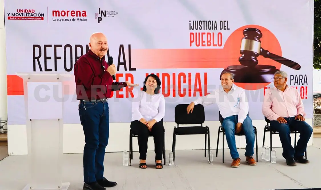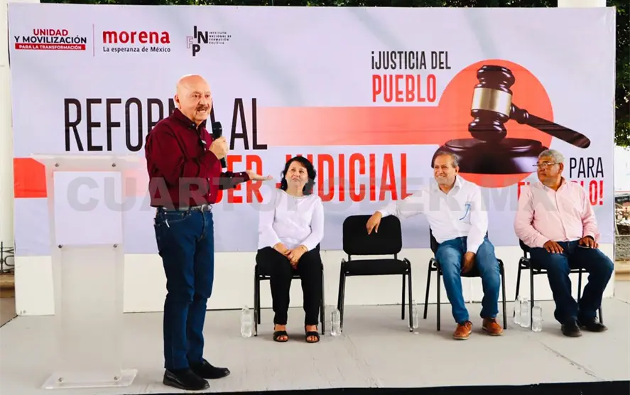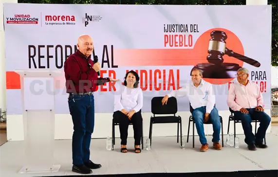 En la explanada del parque Central con la presencia de hombres y mujeres de este territorio, el legislador electo, Cruz Castellanos, acompañado del consejero estatal de Morena, Enrique Aguilar Martínez, destacó que de las 20 Reformas impulsadas por Andrés Manuel López Obrador, la que compete al Poder Judicial es una de las más complejas por todo lo que conlleva, pues se trata de devolver la confianza al pueblo donde los jueces, magistrados y ministros sean electos por las y los mexicanos, así como disminuir sus sueldos para alcanzar la justicia social.