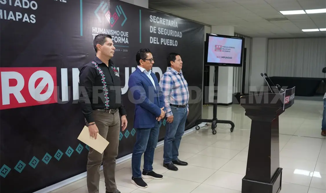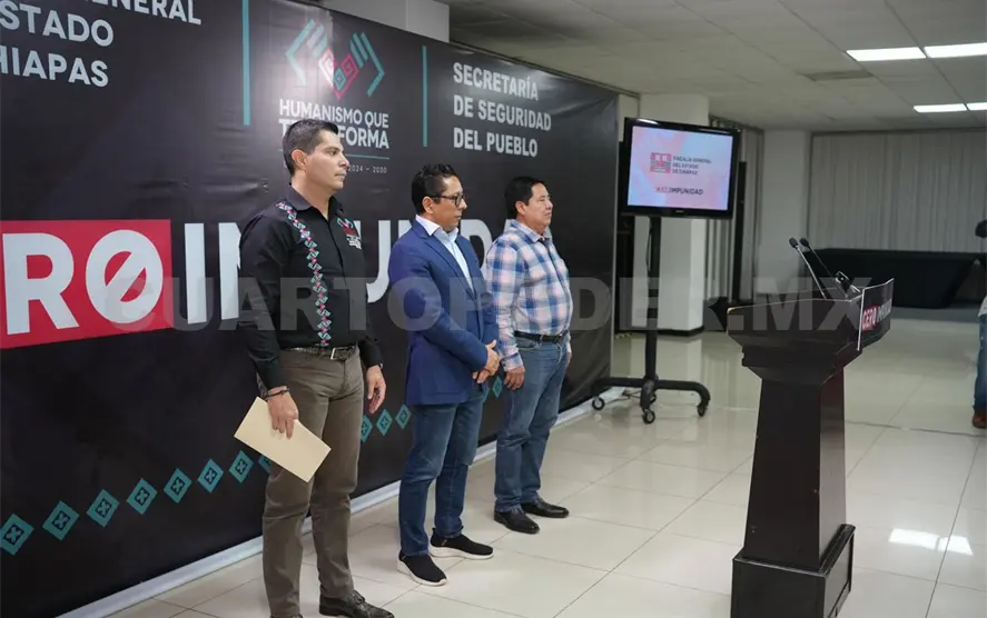 En conferencia de prensa, el Fiscal General del Estado, Jorge Luis Llaven Abarca y el Secretario de Seguridad del Pueblo, Óscar Alberto Aparicio Avendaño, informaron sobre las acciones que se han realizado en los últimos días para garantizar la seguridad y el estado de derecho en Chiapas.