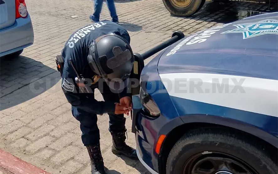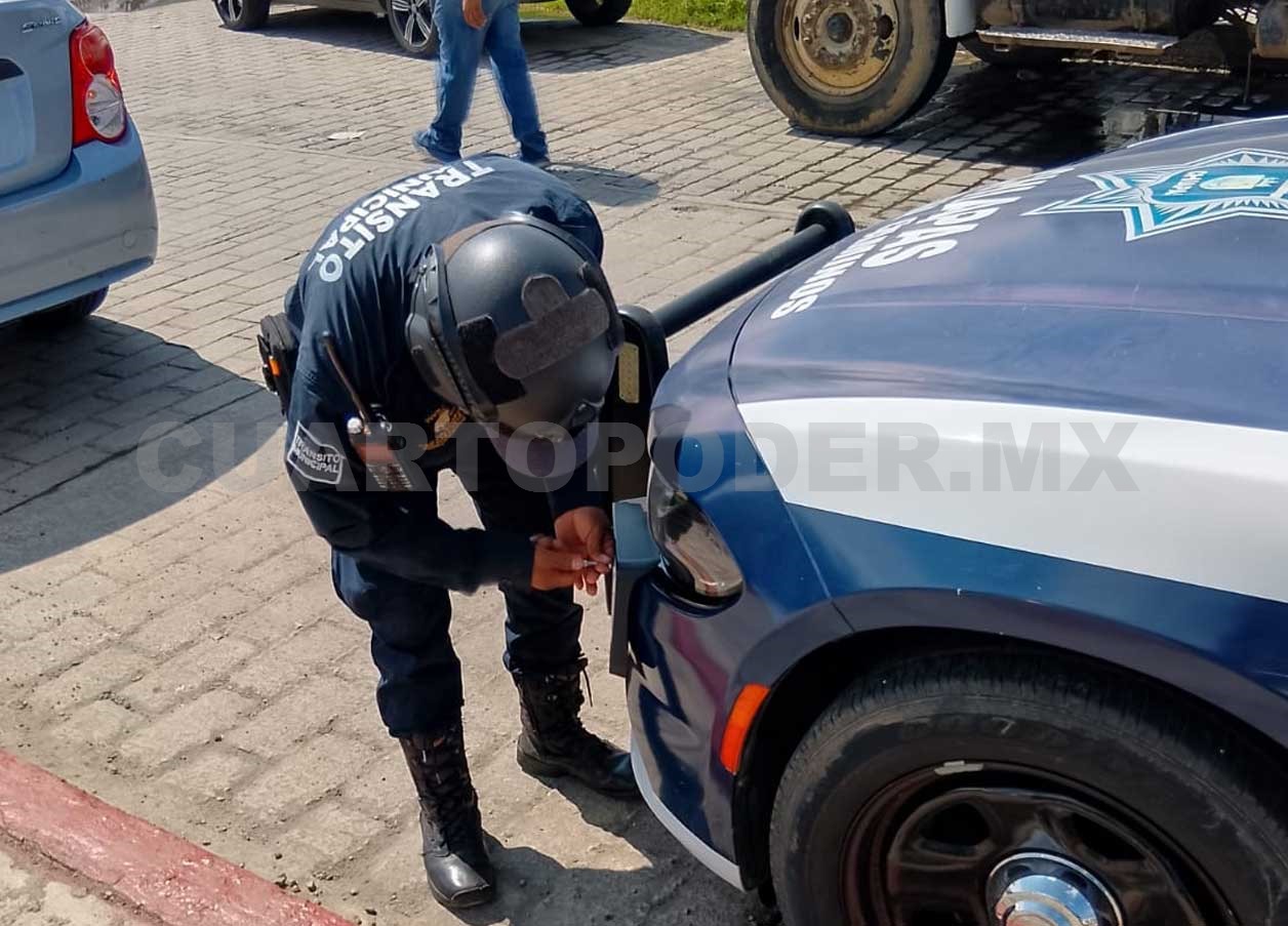 Se informó que el agente y conductor del vehículo oficial estacionó su unidad en un lugar prohibido, por lo que el agente de tránsito sacó sus herramientas y le quitó la placa lo que generó una multa de mil 500 pesos por estacionarse en línea roja.
