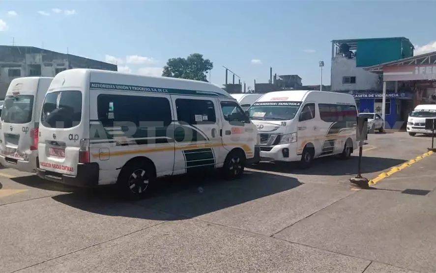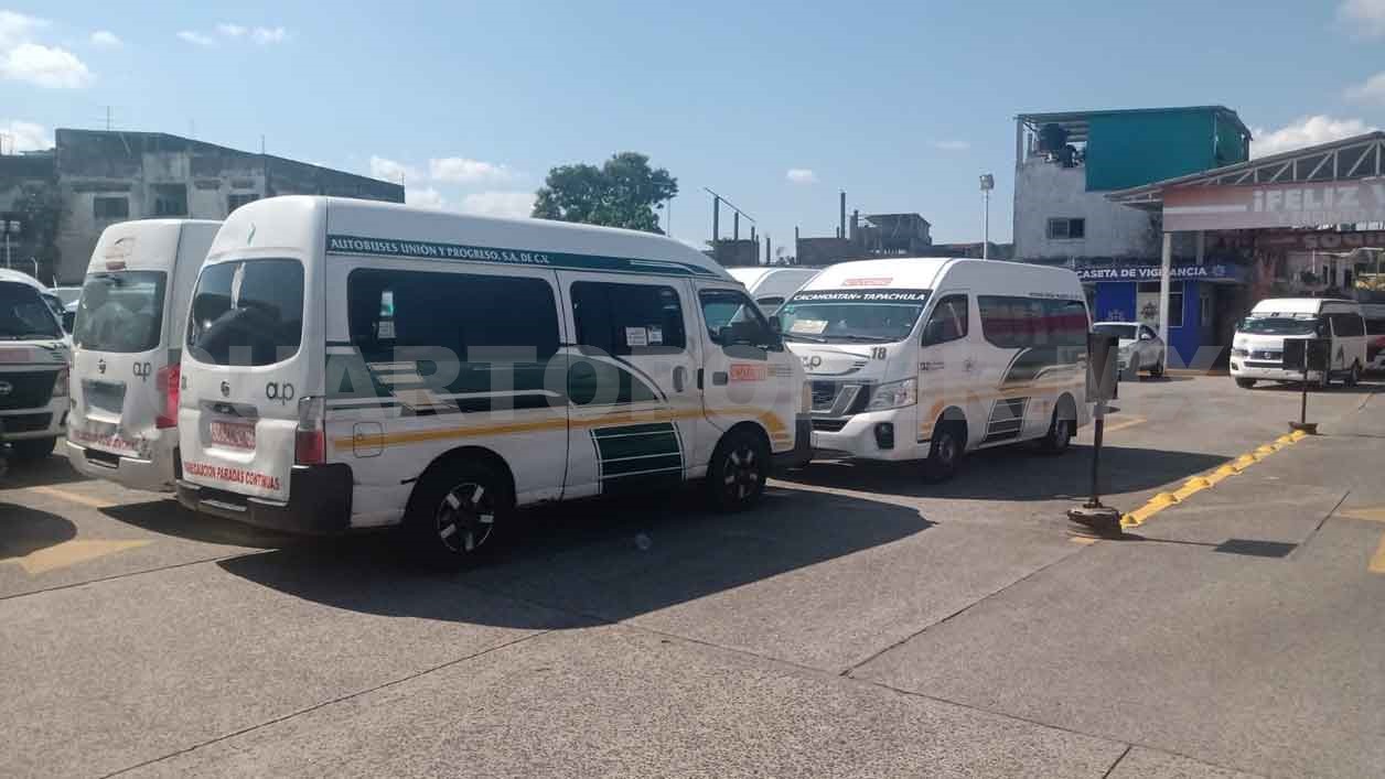 En la terminal de corto recorrido, los concesionarios de la Sociedad Cooperativa Unión y Progreso llevaron a cabo el paro de actividades hacia las poblaciones de Tuxtla Chico y Cacahoatán.