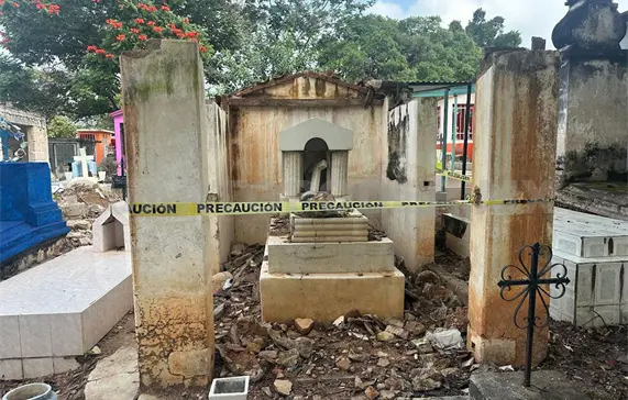 Por ello, elementos de Protección Civil acudieron a los panteones municipales para valorar el nivel de riesgo en tumbas que han sido abandonadas; otras, que el paso del tiempo ha derrumbado sus estructuras y, por último, fosas de losa que se encuentran descubiertas, dando pie a una posible caída de por lo menos tres metros de altura.