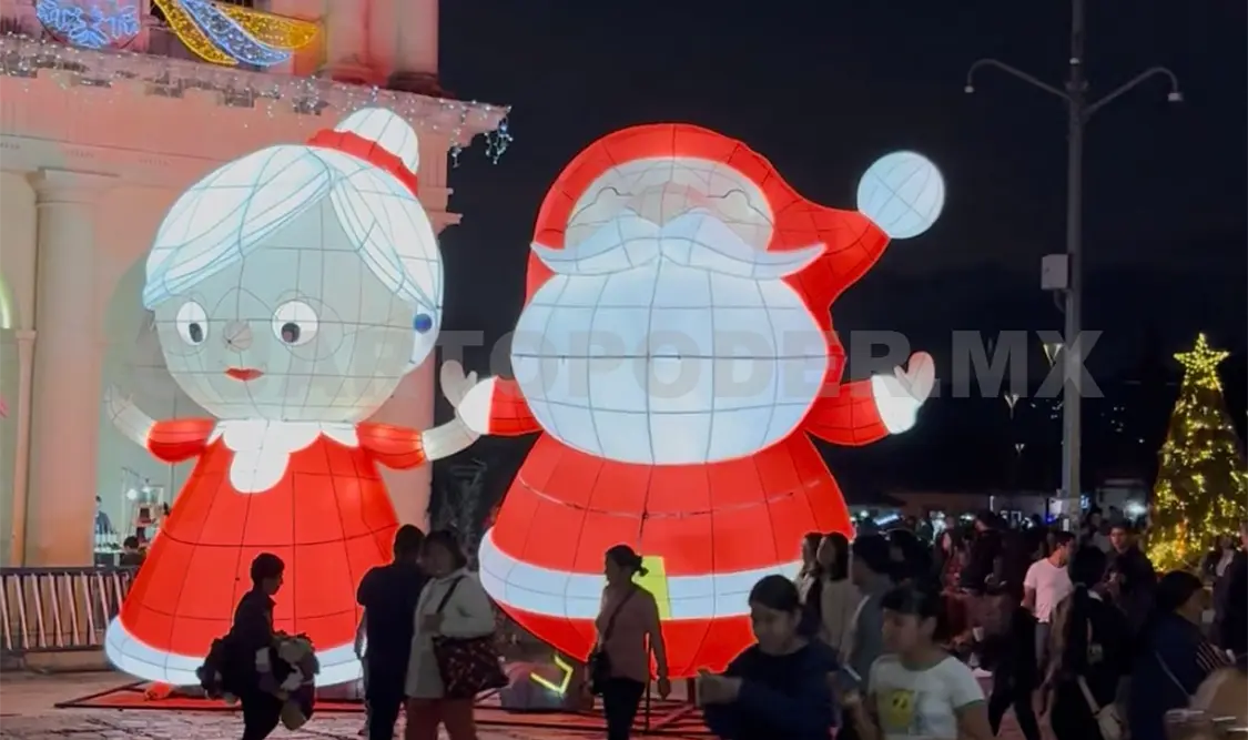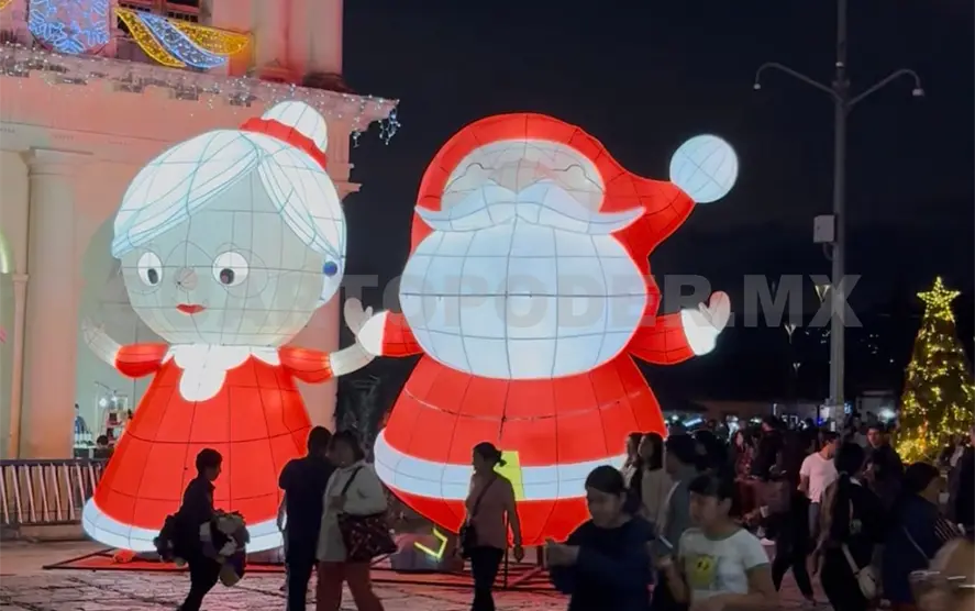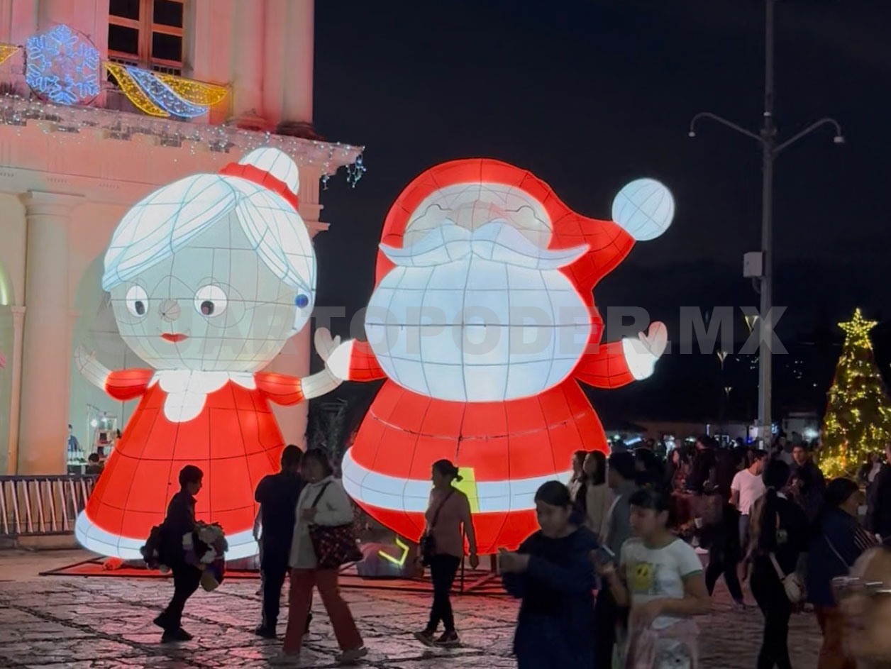 Al terminar de tomarse fotos en una de las casas navideñas que adornan el centro de San Cristóbal, una familia procede a ponerse de nuevo el cubrebocas. Pese a ser uno de los pocos turistas que lo usan, resaltan entre locales y visitantes que continúan con su cotidianidad.