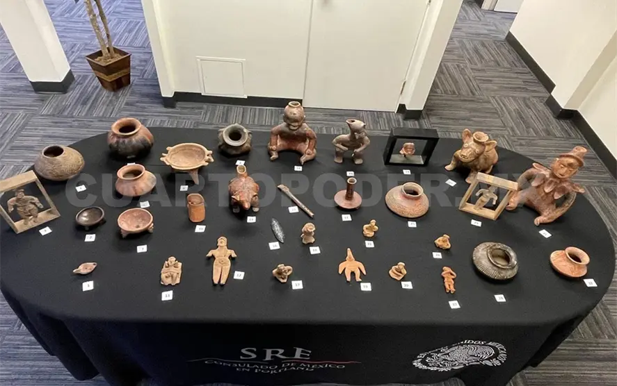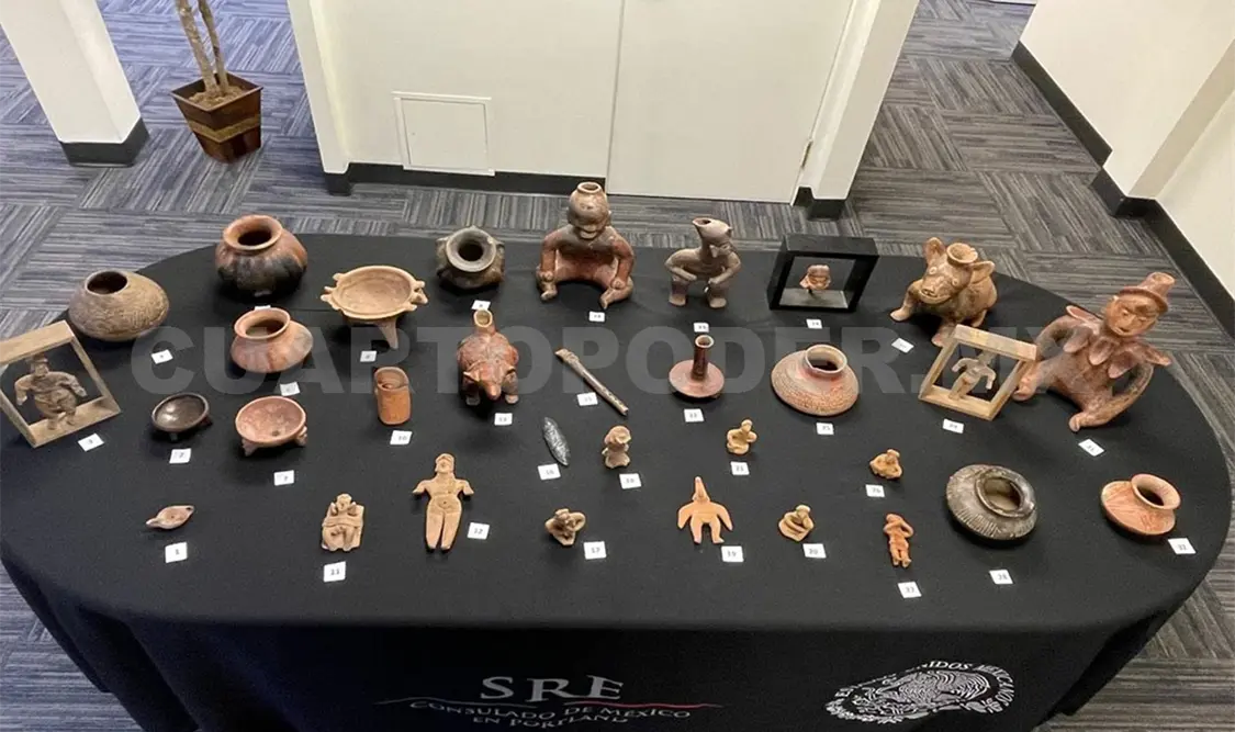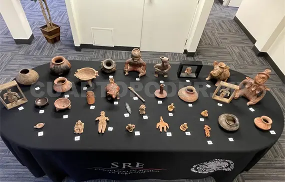 La Secretaría de Relaciones Exteriores (SRE), en coordinación con la Secretaría de Cultura federal y el Instituto Nacional de Antropología e Historia (INAH), recuperó 32 piezas gracias al donativo de la ciudadana estadounidense, Marylou Morton.