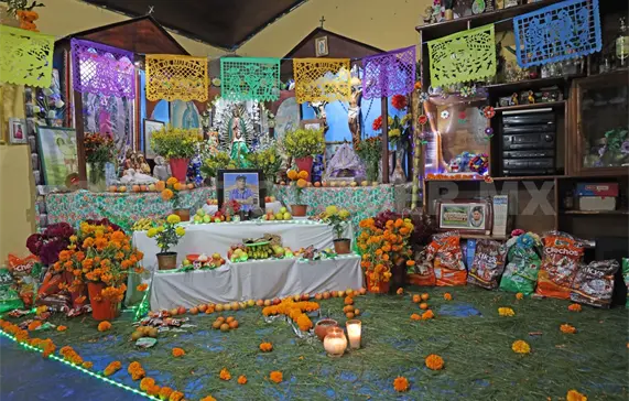 Este espacio considerado como sagrado tiende a ser colorido gracias a las flores y adornos, además suele ser abundante en comida, bebidas, su representación significa la convivencia con los difuntos.