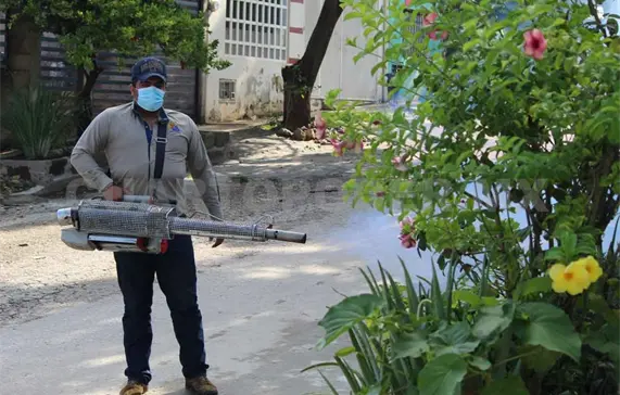 Los trabajadores del área de Vectores de Salud estatal y municipal hacen una gran tarea en el combate al mosco transmisor del dengue. Con una ruidosa máquina esparcen el químico que previene esta enfermedad, tan molesta como el coronavirus. Cuando los escuche llegar, abra puertas y ventanas, para que la nube haga el efecto esperado.