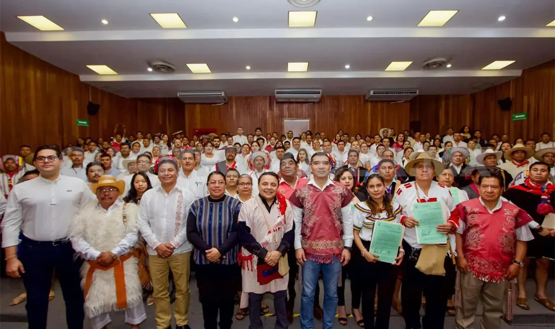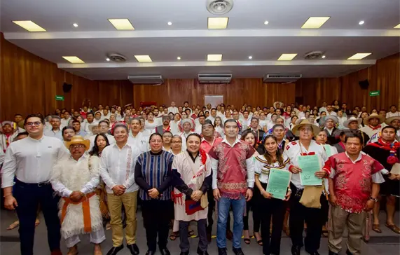 En la ceremonia, estuvieron presentes: la secretaria para el Desarrollo de los Pueblos Indígenas, Leticia Méndez Intzín; el presidente de la Comisión de Pueblos y Comunidades Indígenas y Afromexicanos del Congreso del Estado, Domingo Velázquez Méndez; el diputado Juan Marcos Trinidad Palomares; y el director de Juzgados de Paz y Conciliación, Juzgados de Paz y Conciliación Indígena y Juzgados Municipales.