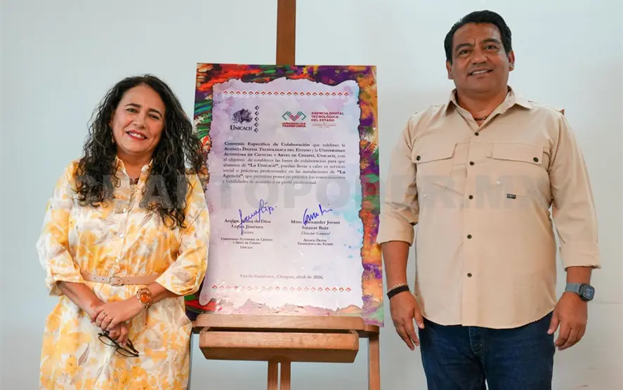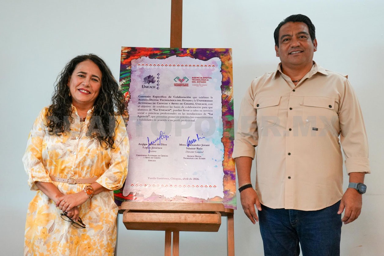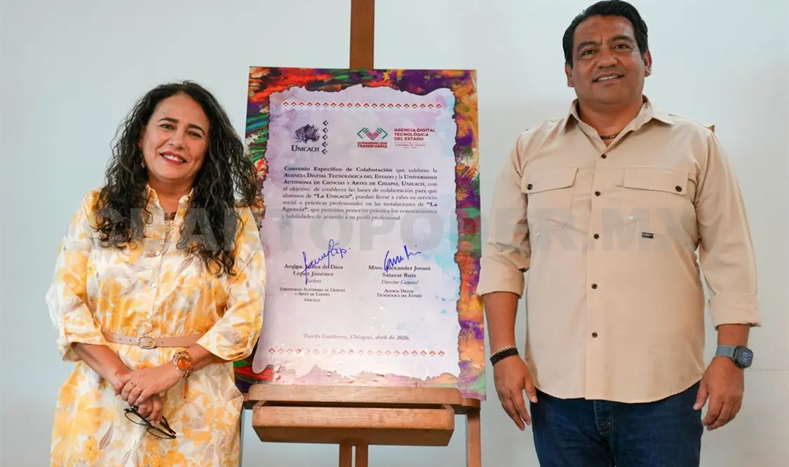 En un acto que refuerza el puente entre la academia y el sector público tecnológico, la Universidad Autónoma de Ciencias y Artes de Chiapas (Unicach) y la Agencia Digital Tecnológica del Estado (Aditech) formalizaron un Convenio Específico de Colaboración que permitirá a las y los estudiantes universitarios realizar su servicio social y/o prácticas profesionales en las instalaciones de la Aditech.