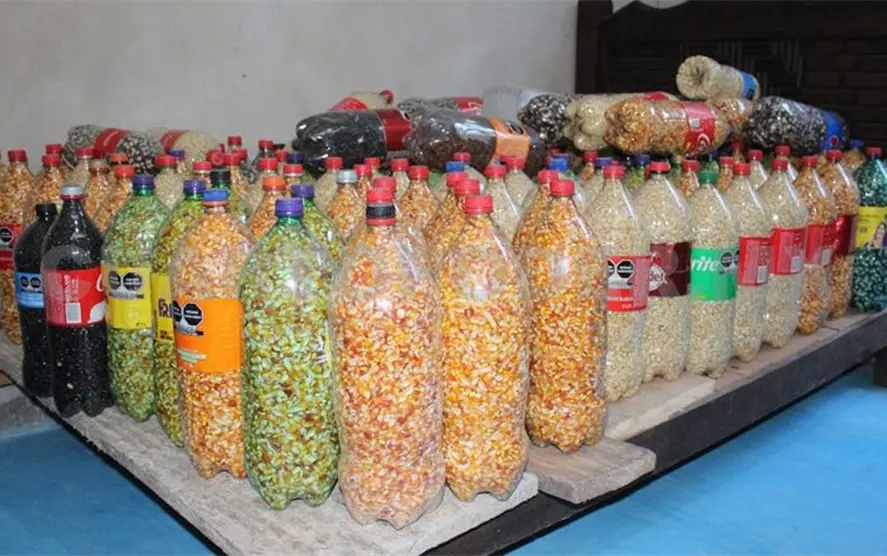 Familias agricultoras han implementado el uso de botellas y contenedores PET para almacenar sus granos como maíz y frijol, y así evitar pérdidas poscosecha que llegan a ser hasta del 40 % de la producción, debido a las plagas y la humedad, que afectan directamente a su economía.