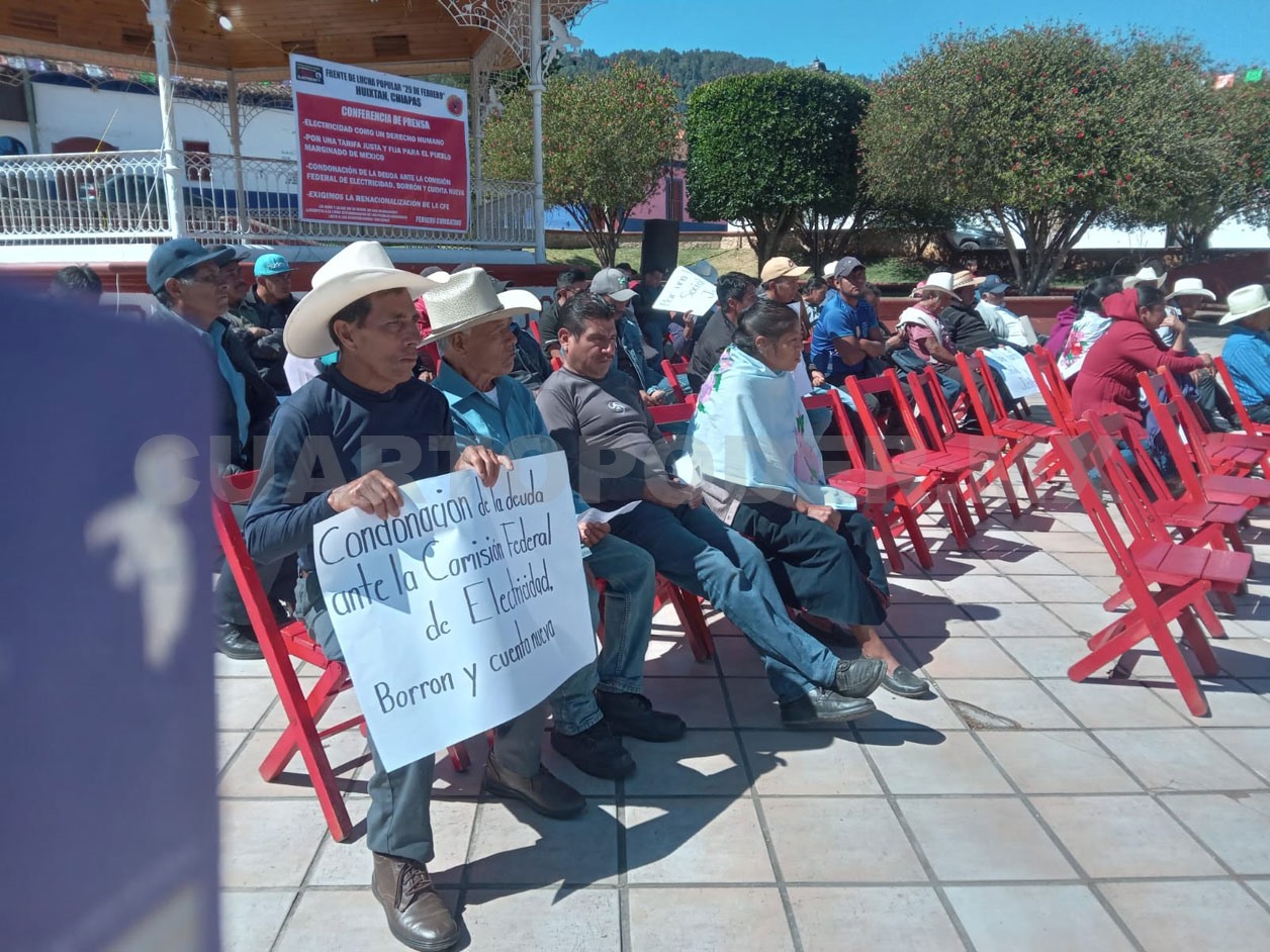 Al celebrar con un mitin en el parque de Huixtán el 23 aniversario de su fundación, el Frente exigió para los habitantes dl municipio la condonación de la deuda y “borrón y cuenta nueva” por el acumulado que le deben a la CFE, a causa de que se encuentran en resistencia de pago desde hace varios años, en protesta por las altas tarifas.