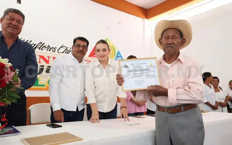 Con la presencia de más de 350 ejidatarios del ejido Villaflores, encabezados por el presidente del comisariado, Agustín Solís Alfaro, se llevó a cabo la celebración del 90° aniversario de su fundación. Como invitada de honor, la presidenta municipal Valeria Rosales Sarmiento acompañó a los ejidatarios en este importante festejo.
