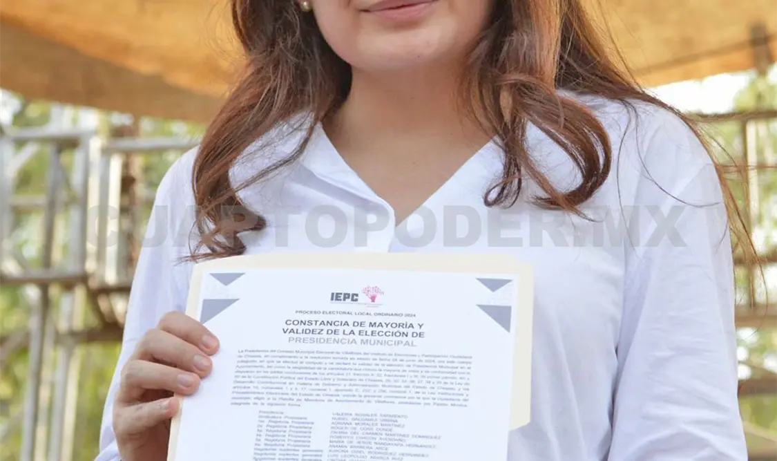 Valeria Rosales Sarmiento recibió ayer martes, en compañía del presidente de Morena, Carlos Molina y del diputado electo por el distrito 23, Mario Guillén Guillén, la constancia de mayoría de votos que la acredita como presidenta municipal electa de Villaflores. Con el total de actas electorales computadas, obtuvo 53 mil 340 votos, convirtiéndose en la presidenta municipal más votada en la historia de Villaflores.