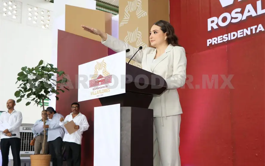En una sesión solemne de cabildo, realizada en el auditorio, declarado recinto oficial, Valeria Rosales Sarmiento tomó protesta como presidenta municipal de Villaflores, acompañada de su familia, regidoras, regidores y el síndico.