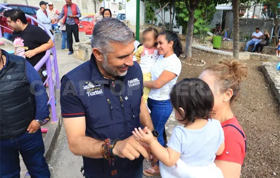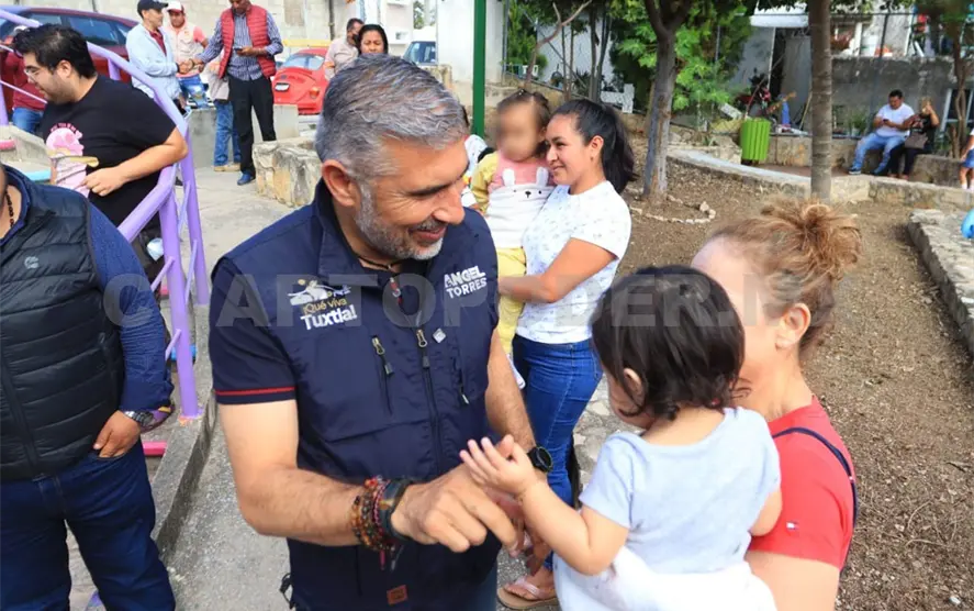 Al hacer un recorrido por el área rehabilitada, Ángel Torres exhortó al pueblo tuxtleco a que cuiden los parques, el mobiliario, los juegos infantiles, y que pongan la basura en su lugar, porque “son espacios de ustedes, de las y los colonos”.