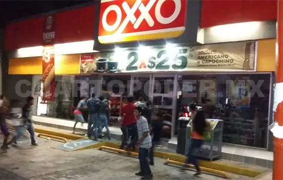 De esa manera fueron saqueadas unas 20 sucursales de la cadena de tiendas Oxxo y otro número similar de Modelo Plus, así como destrozaron y robaron el centro comercial Soriana en su sucursal Akishino, al sur de la ciudad.
