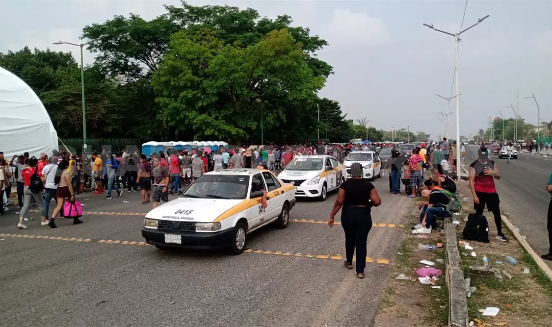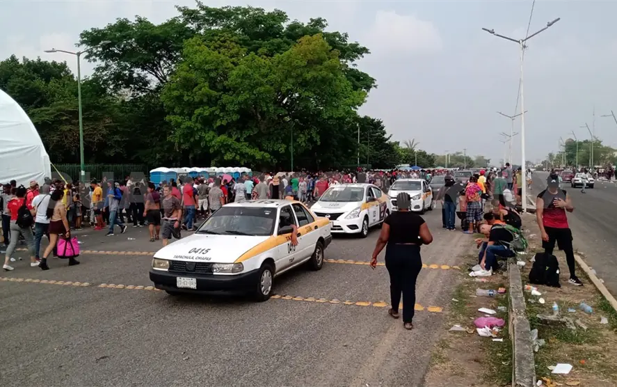 Bajo la vigilancia permanente de la Guardia Nacional y de autoridades estatales y municipales, miles de extranjeros se arremolinan en los alrededores del Parque Ecológico “Los Cerritos” en Tapachula, para solicitar al Instituto Nacional de Migración (INM) la Forma Migratoria Múltiple (FMM), a fin de continuar su viaje hacia los Estados Unidos.