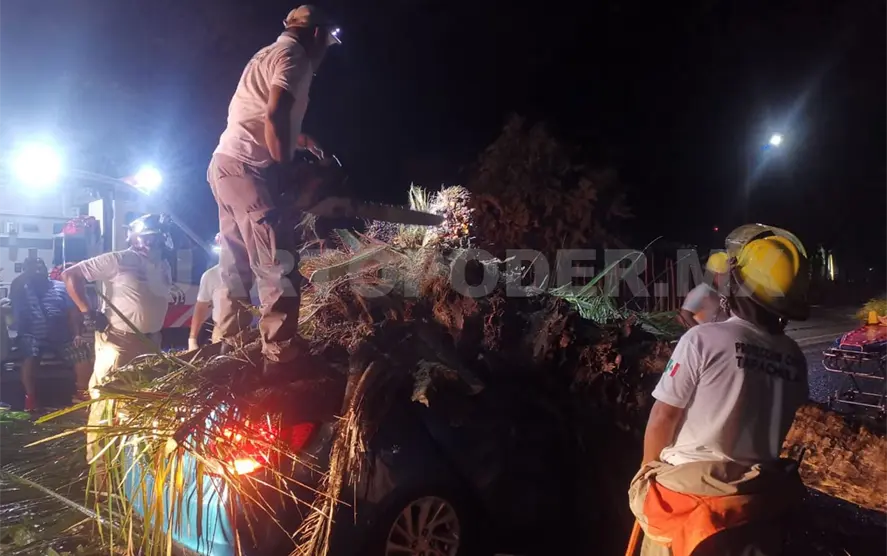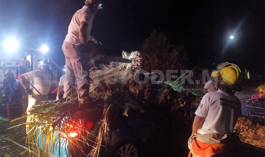 Derivado de ello, elementos de la Policía Auxiliar de la Secretaría de Seguridad Pública del Estado, rescataron a una mujer que quedó atrapada al interior de su vehículo, al que le cayó un árbol encima, en la colonia Buenos Aires, al sur de la ciudad.