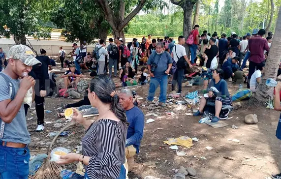 Los extranjeros se concentran en Viva México, donde incluso algunos han instalado casas de campaña, pero la mayoría permanece a la intemperie, en espera de la atención del personal migratorio.