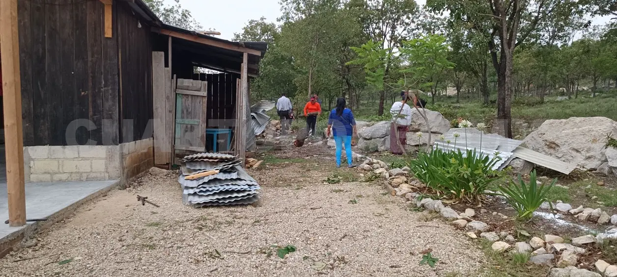 Posteriormente, una vivienda de pared de block y techo de lámina de unos tres metros por cinco de largo, que habita una familia, resultó dañada al levantarse todo el techo, dejando a la intemperie los electrodomésticos y muebles.