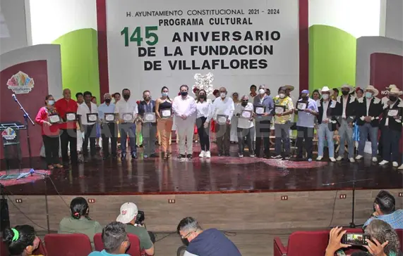 El alcalde Mariano Rosales dijo que en la fiesta del aniversario 145 de la fundación de Villaflores, los ciudadanos deben sentirse orgullosos de que en Villaflores haya unidad y todo se debe a que la gente es trabajadora, honrada y muy alegre, por lo que dijo lo mejor de Villaflores es su gente.
