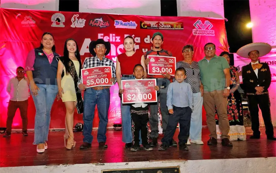 Con gran asistencia y participación, se llevó a cabo el Festival del Amor y la Amistad en el parquecito Emiliano Zapata Salazar, donde las familias disfrutaron de una noche llena de música y alegría. Como parte de las actividades, se realizó el concurso “Cantándole al Amor”, en el que aficionados al canto deleitaron al público con la interpretación de conocidos temas románticos. Los ganadores fueron premiados con incentivos en efectivo.