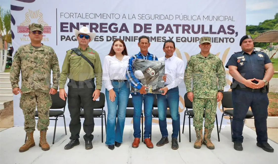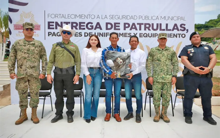 En la comandancia municipal se realizó la entrega de tres patrullas, tres moto patrullas, 70 paquetes de uniformes para la Policía Municipal y 400 para la Policía Ejidal, así como el inicio de un programa de capacitación especializada.