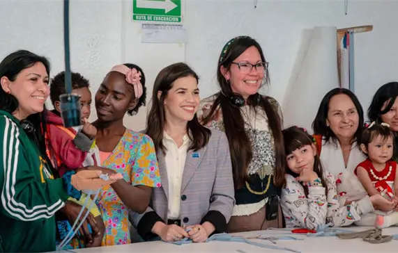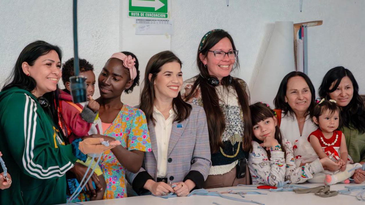 Durante su estancia, conoció de primera mano las historias de mujeres que participan en la iniciativa textil Mujeres Migrantes Tejiendo Futuros, un proyecto impulsado por la OIM en colaboración con la marca mexicana Básicos de México (BSCS), que busca fortalecer capacidades, generar comunidad y abrir alternativas económicas para mujeres en situación de movilidad.