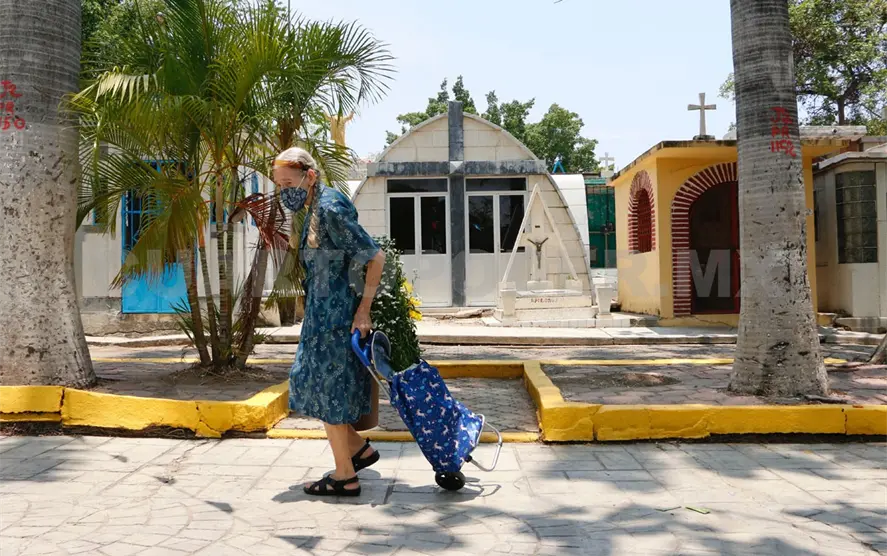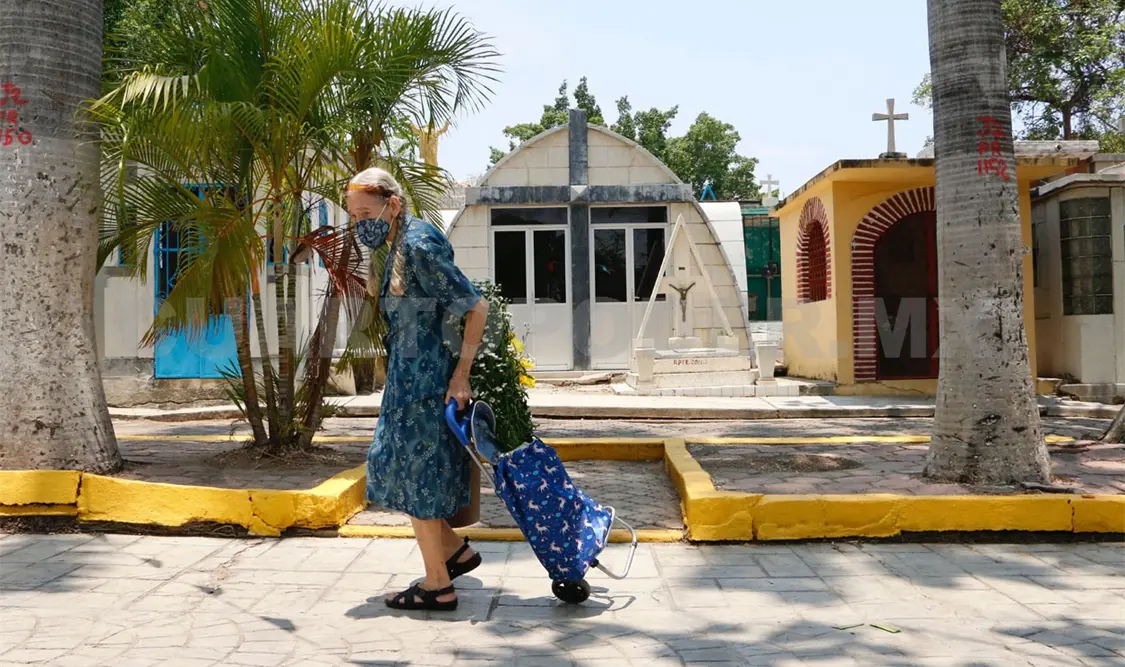 En otra capilla, más al centro del panteón, se encuentra doña Candelaria Sánchez con su hija, acomodando las flores, que en esta ocasión, dice, le han costado un 30 % más caras a las afueras del panteón.