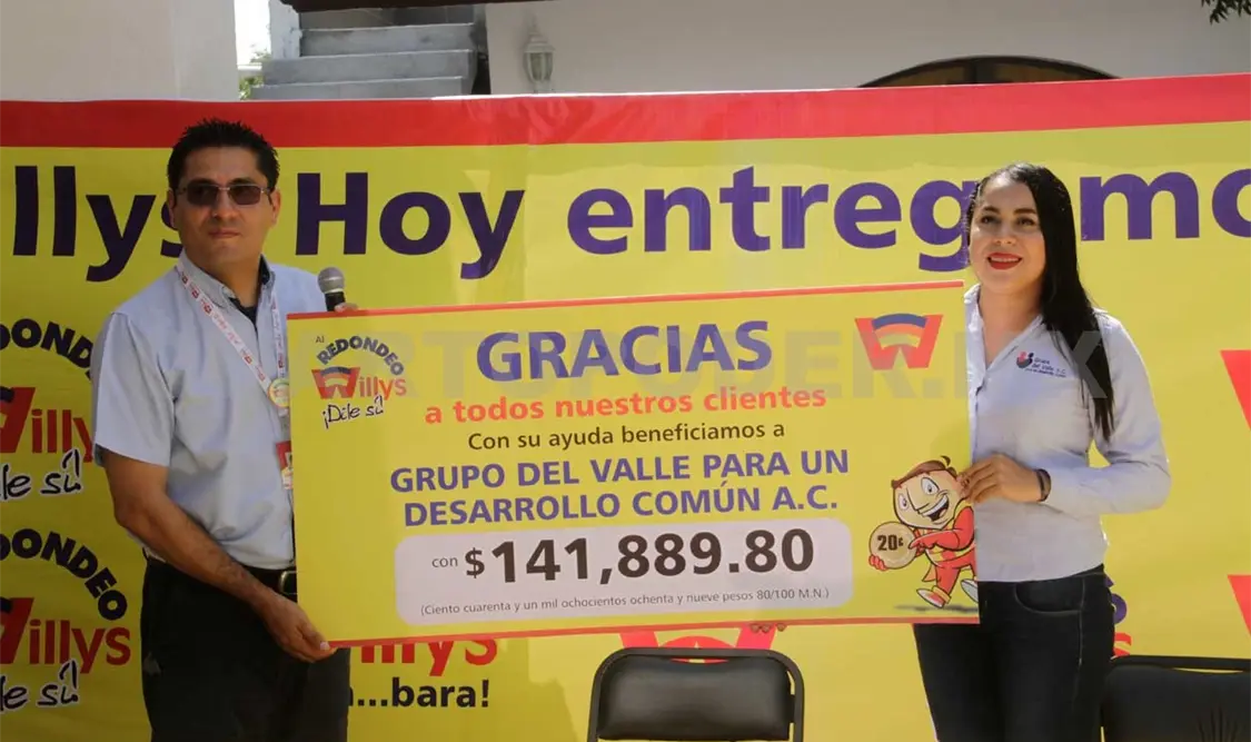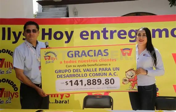 Grupo del Valle, para un Desarrollo Común A.C. fue la fundación beneficiada por el redondeo que se llevó a cabo desde el 31 de mayo al 31 de agosto en cada una de las 325 tiendas abarroteras Willys ubicadas en el Sur del país.