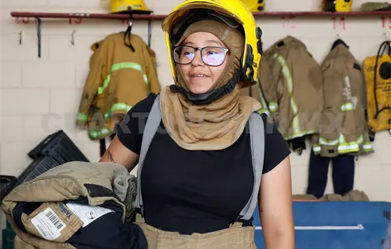 La joven bombera comparte que a pesar de que es mujer y que se desarrolla en el ambiente de los “tragahumo”, se siente apoyada por sus compañeros que son de mentalidad abierta y ven con buenos ojos que siendo mujeres quieran aprender y hacer las cosas por ellas mismas, así como abrirse a nuevos conocimientos y capacidades.