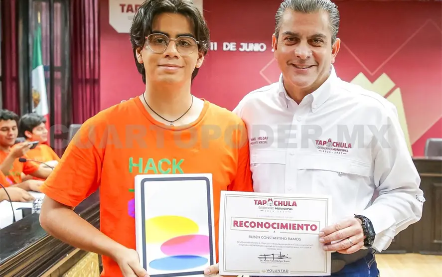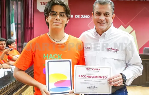 A nombre del gobierno de Tapachula, el presidente municipal, Yamil Melgar, entregó reconocimientos, tablets y una gratificación económica a estudiantes de la licenciatura de Ingeniería en Desarrollo y Tecnología de Software de la Facultad de Negocios, Campus IV de la Universidad Autónoma de Chiapas (Unach), quienes participaron en el Concurso Nacional Hackathon 2025.