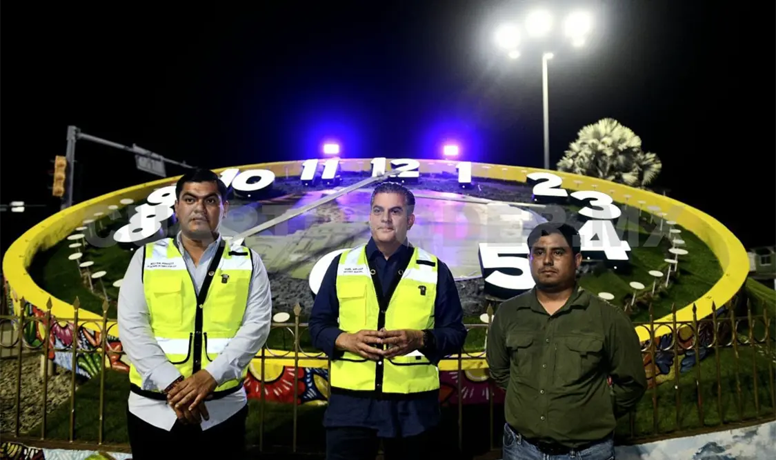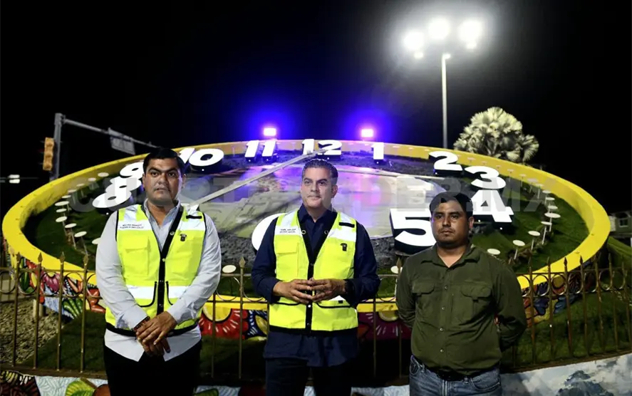 Como parte del mejoramiento integral del espacio, se implementaron acciones de iluminación estratégica, incluyendo reflectores de alta potencia instalados en torres elevadas, así como la iluminación de las letras distintivas y de los números del reloj floral, lo que permite reforzar la visibilidad y brindar mayor seguridad tanto para peatones como para automovilistas. Asimismo, se informó que las manecillas del reloj están próximas a entrar en operación para marcar correctamente la hora, una vez concluya la reparación del motor, el cual requiere piezas especiales para su funcionamiento.