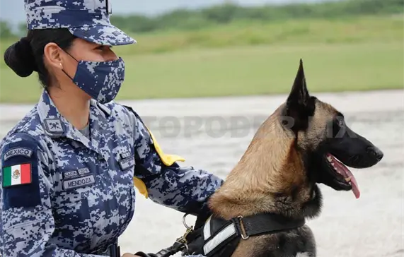 Desde pequeño, dijo la militar, el canino fue preparado para rastrear pseudoaromas relacionados con marihuana, heroína y cocaína. Estos ejemplares tienen una relación permanente con la persona que los entrena, con ella socializa y así se facilita el trabajo en campo.
