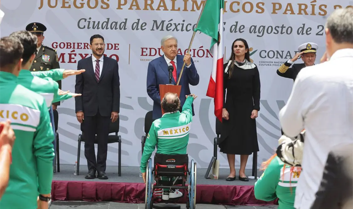 Este jueves se llevó a cabo la ceremonia de abanderamiento de le delegación mexicana, de cara a los Juegos Paralímpicos de París 2024, que se celebrarán del 28 de agosto al 8 de septiembre y en los que México contará con 67 atletas que buscarán poner el nombre del país en lo más alto.