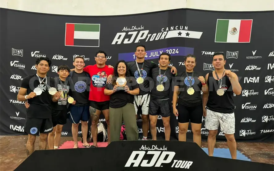 Con un total de 17 medallas —nueve de oro y ocho de plata—, la Academia Melvin Revilla Brazilian Jiu Jitsu, con el entrenador y competidor brasileño Bruno Faneco al mando, obtuvo un histórico tercer lugar por equipos para Chiapas en el AJP Abu Dhabi Jiu-Jitsu Pro Tour Cancún, evento internacional que se desarrolló en Quintana Roo.
