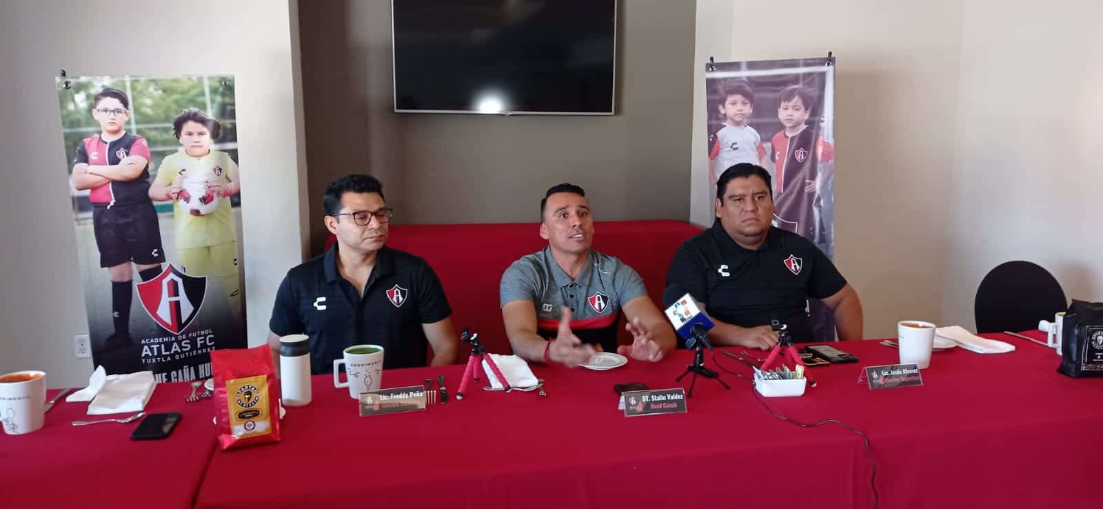En conferencia de prensa fue presentada oficialmente la Academia Atlas Filial Tuxtla, que abrirá sus puertas para todos los chiapanecos a partir del próximo 23 de enero. Jesús Álvarez, director deportivo; Freddy Peña, gerente de “marketing”, y Stanlin Valdez, director de entrenadores estuvieron en el evento.