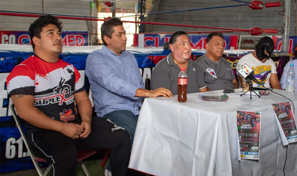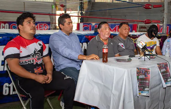 En conferencia de prensa, Marco Jiménez, de Promociones Jiménez; Miguel Barrientos, de Promociones Maxillus, y Mario Guirao, de Clinimed, demostraron su unión como empresarios y dieron los pormenores de la próxima función que tendrá el Centro Deportivo Roma de Tuxtla Gutiérrez, donde más de 30 luchadores se presentarán para celebrar la instauración de la Lucha Libre en México y el tercer aniversario de Promociones Jiménez.