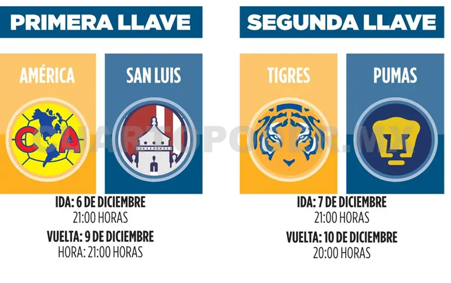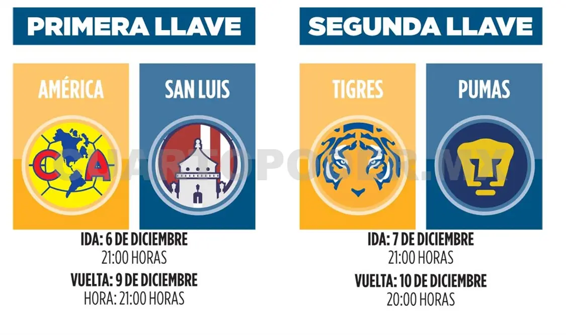 América, cuadro que lideró la competencia y que venció a León de forma contundente se medirá al Atlético de San Luis, institución que ante todo pronóstico derrotó a Monterrey para seguir soñando.