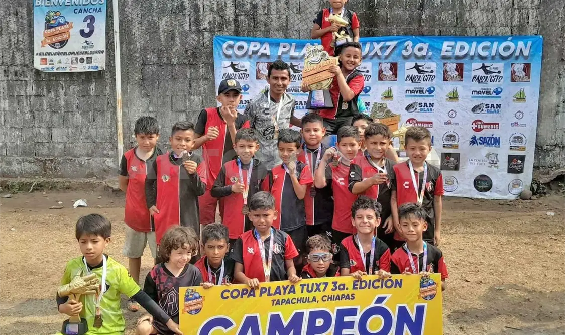 La Academia Atlas Filial se convirtió en el nuevo campeón de la Copa Playa 2024 en la categoría infantil menor. Los pupilos del profesor Marcos Aarón Herrera terminaron invictos la competencia y se quedaron con la máxima gloria al derrotar al local Tigrillos de Tapachula con marcador de 4-2. Tras la obtención del título, los rojinegros clasificaron de manera directa a la Copa Chiapas Tux 7, que se desarrollará en septiembre.