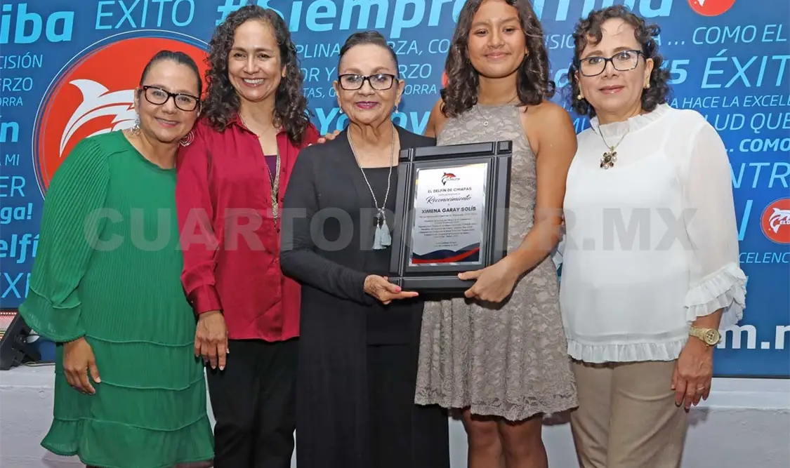 Finalmente, se premió a Ximena Garay Solís, medallista de bronce por México en el CCCAN “El Salvador 2023” y ganadora de preseas por Chiapas en los Juegos Nacionales Conade 2023, Nacional de Invierno “Quintana Roo 2022”, Arena Grand Prix “Tijuana 2023” y Nacional de Verano C. L. “Jalisco 2023”.