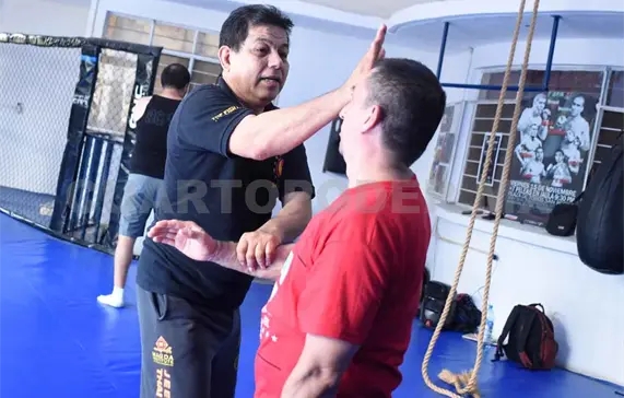 “El Jeet Kune Do pelea con los puños, con las patadas altas, con las patadas rápidas, bajas, con llaves, pero también con lucha en el suelo”, agregó el maestro.