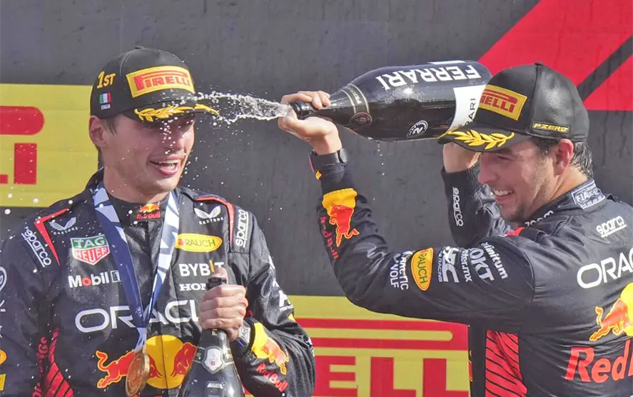 El neerlandés y el mexicano se fueron de la última carrera en Europa con el 1-2 en la bolsa e importantes unidades para cada uno y para el equipo, que está más que perfilado para volver a conquistar la corona de los constructores.