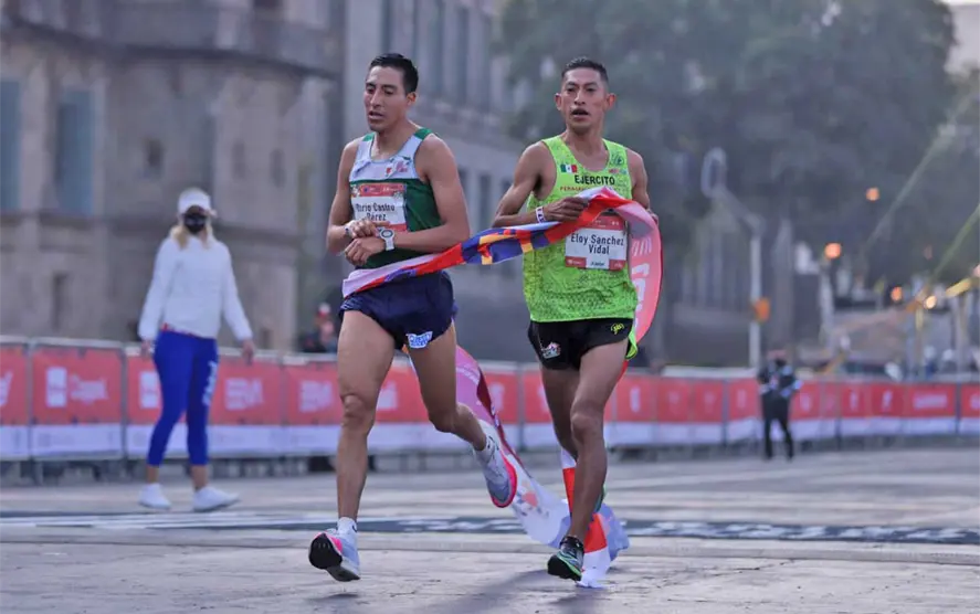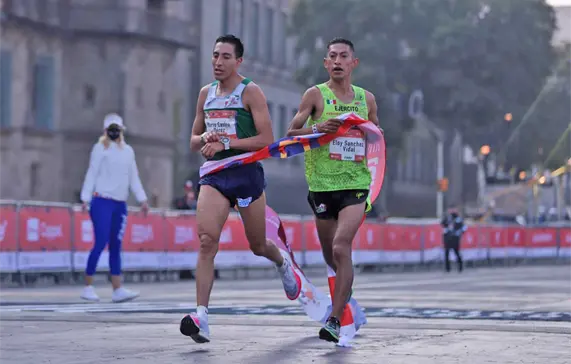 El miembro del ejército nacional terminó su carrera con un tiempo de 02:14:51. Llegó al Zócalo capitalino junto al también mexicano Eloy Sánchez, quien detuvo su reloj en 02:14:52.