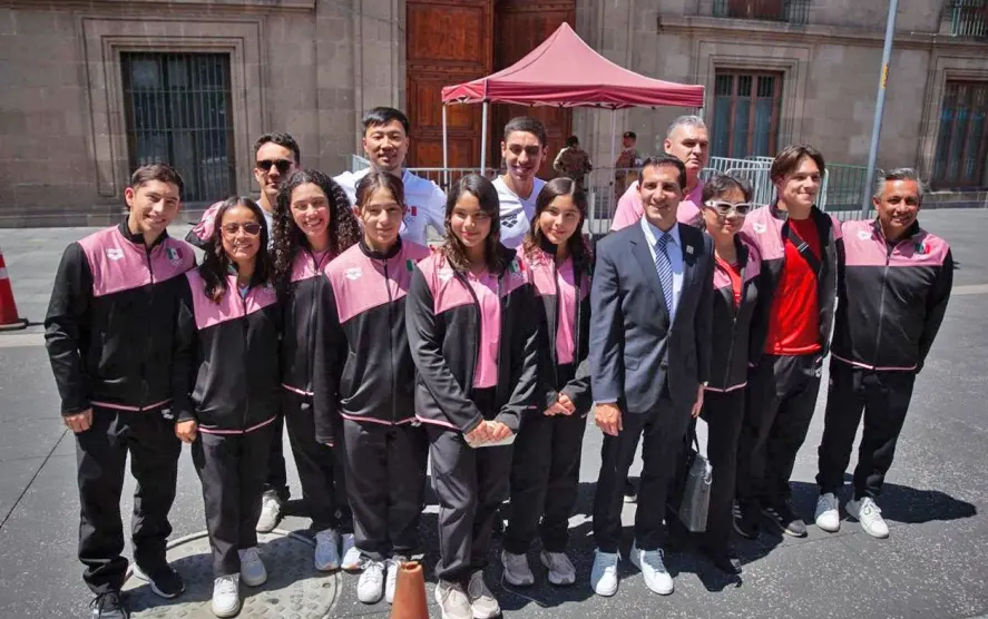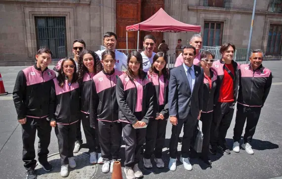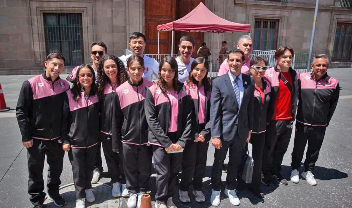 La presidenta Claudia Sheinbaum Pardo recibió este martes 5 de agosto en Palacio Nacional a los clavadistas que participaron en el Campeonato Mundial de Deportes Acuáticos celebrado en Singapur, después de haber arribado por la madrugada a México.
