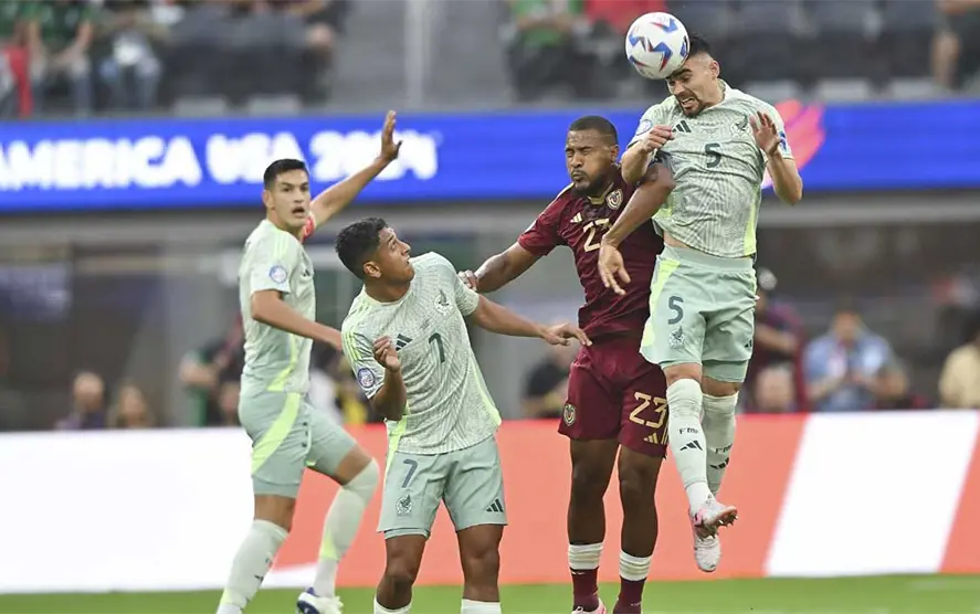 México comprometió su calificación a la siguiente fase de la Copa América 2024 tras perder 0-1 con Venezuela en la segunda jornada del grupo B, en el estadio SoFi. El Tri dominó gran parte del encuentro, pero falló todas las ocasiones que tuvo, mientras que Venezuela fue de menos a más sobrellevando al rival y con pocas oportunidades en la primera parte.