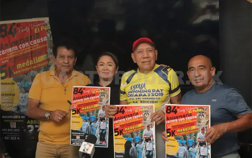 En el marco del 84º aniversario de Fredy Valencia, “El Puma”, fue presentada la edición 2025 de la Carrera 5K Vamos Ancianos, una competencia que se ha convertido en una tradición en Tuxtla Gutiérrez. La justa deportiva se llevará a cabo el domingo 27 de abril, iniciando a las 7 de la mañana en el parque Bicentenario