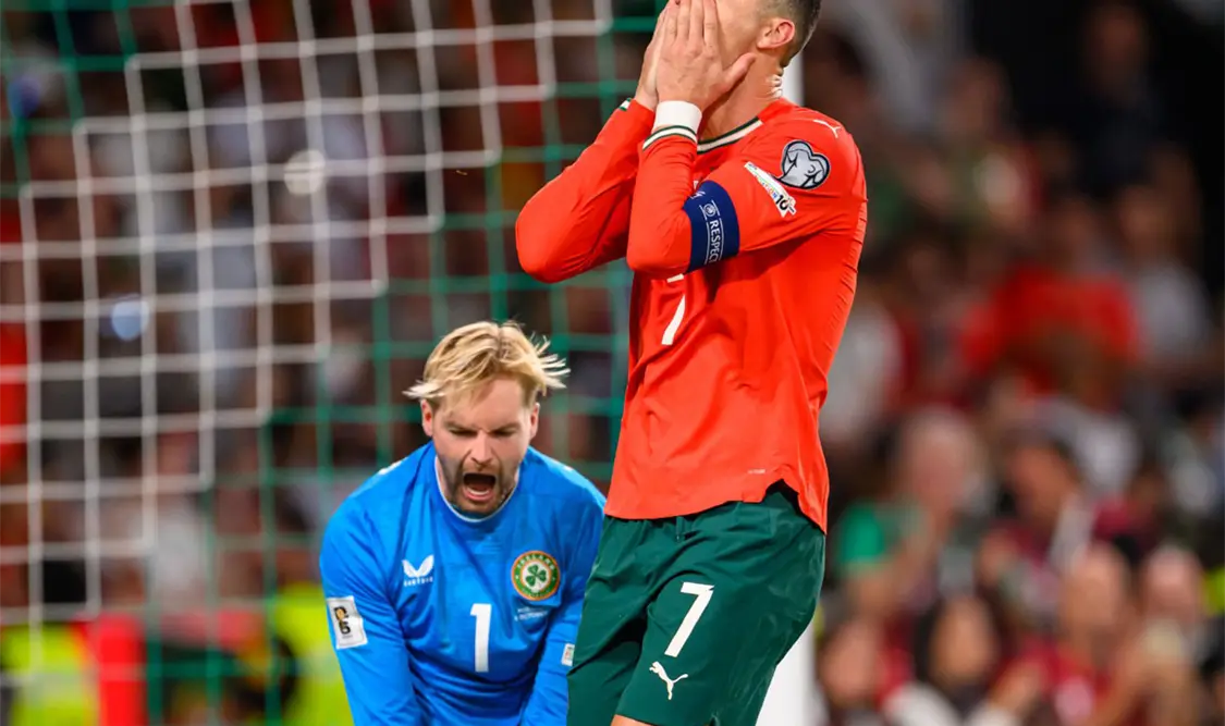 Eran los últimos segundos del minuto 74 cuando Cristiano Ronaldo, desde los 11 pasos, buscaba darle la ventaja a la selección portuguesa en el duelo clasificatorio para la Copa Mundial del 2026 cuando sorpresivamente emergió la figura de Caoimhim Kelleher.