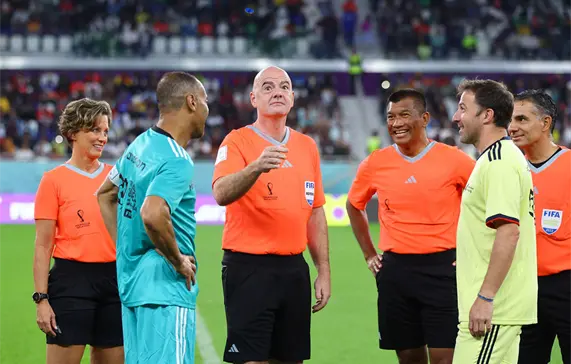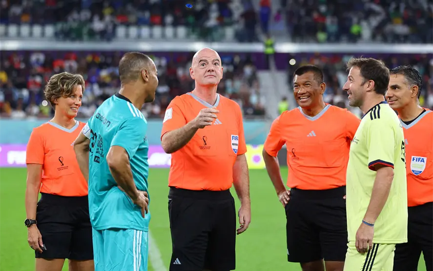 Gianni Infantino, presidente de la FIFA, arbitró siete minutos en el partido entre leyendas de la FIFA y obreros.
