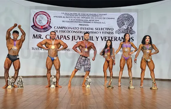 Colosos de Comitán de Domínguez, San Cristóbal de Las Casas, Huixtla y Ocozocoautla integran la selección chiapaneca avalada para participar en el 46º Campeonato Nacional de Fisicoconstructivismo y Fitness Mr. México Juvenil y Veteranos, a efectuarse del 16 al 18 de mayo, en el teatro Ferrocarrilero de la capital del país.