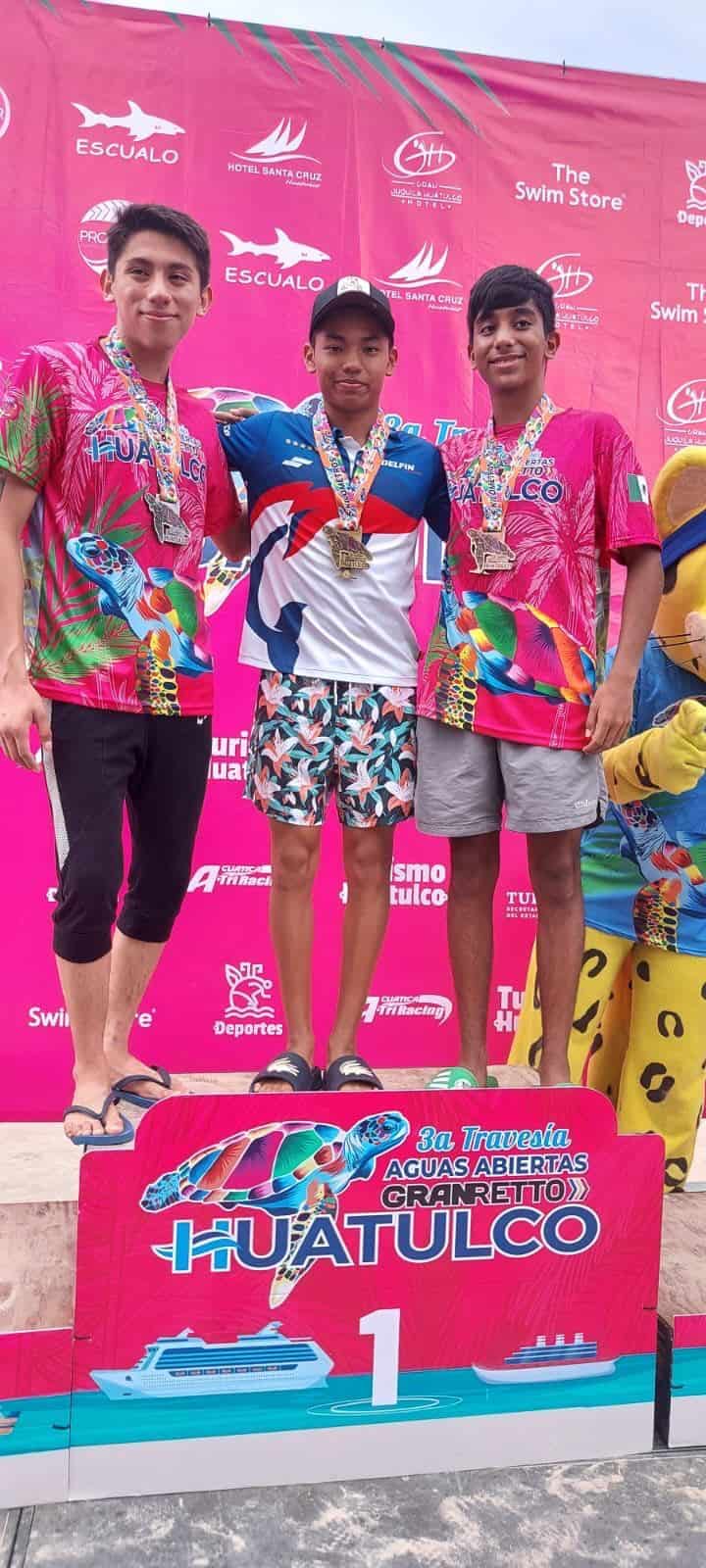 Excelente participación tuvieron dadores de El Delfín de Chiapas en la Tercera Travesía de Aguas Abiertas Gran Reto Huatulco 2023, luego de conquistar 2 campeonatos y 4 subcampeonatos, en las pruebas de 500 metros, así como en 1.5 y 5 kilómetros, celebradas el pasado fin de semana en Bahías de Huatulco, Oaxaca.